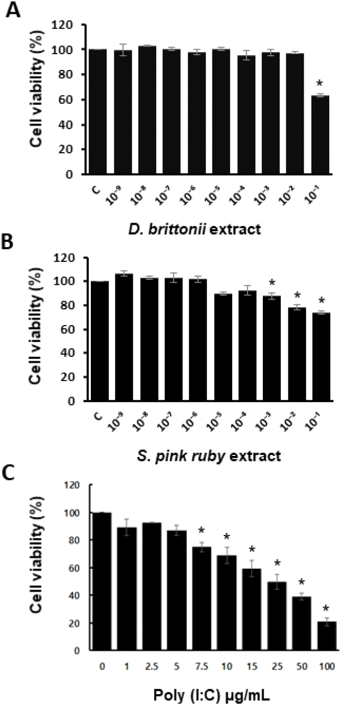 Effect of Succulents (Dudleya brittonii and Sedeveria pink ruby) Extracts on Poly(I:C)-Induced Inflammation in DF-1 Chicken Fibroblasts